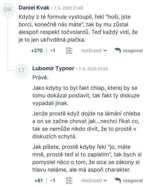 Alespoň se každá diskuze kolem formule stočila a ať si přečtete článek kdekoli, naleznete naprosto identické komentáře: