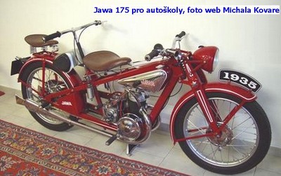 U skupiny A mi to taky nevadilo, dokonce jsem byl rád, že nemusím jezdit na motorce s druhými řidítky. Myslím, že se tomu vyhýbali i učitelé, protože na silnici nebyl tandemový výcvik příliš k vidění. Malá odbočka: Estetický dojem po naroubování druhých řidítek ponechám tentokrát stranou. Že se pomocí nich lépe zvedá ležící stroj je sice pravda, ale po ukončení autoškoly tato výhoda padá. Při pádu může dojít k zaklínění žáka a při nárazu zase k poranění břicha nebo ke zlomeninám v oblasti pánve. Je jasné, že druhá řidítka nemohou být umístěna jinde, než jsou. Jak dokládá snímek motocyklu z roku 1935, nebývalo to tak vždycky. Staré řešení, které je mnohem bezpečnější, umožňovala jiná konstrukce rámu a také to, že sedadla byla od sebe oddělená.